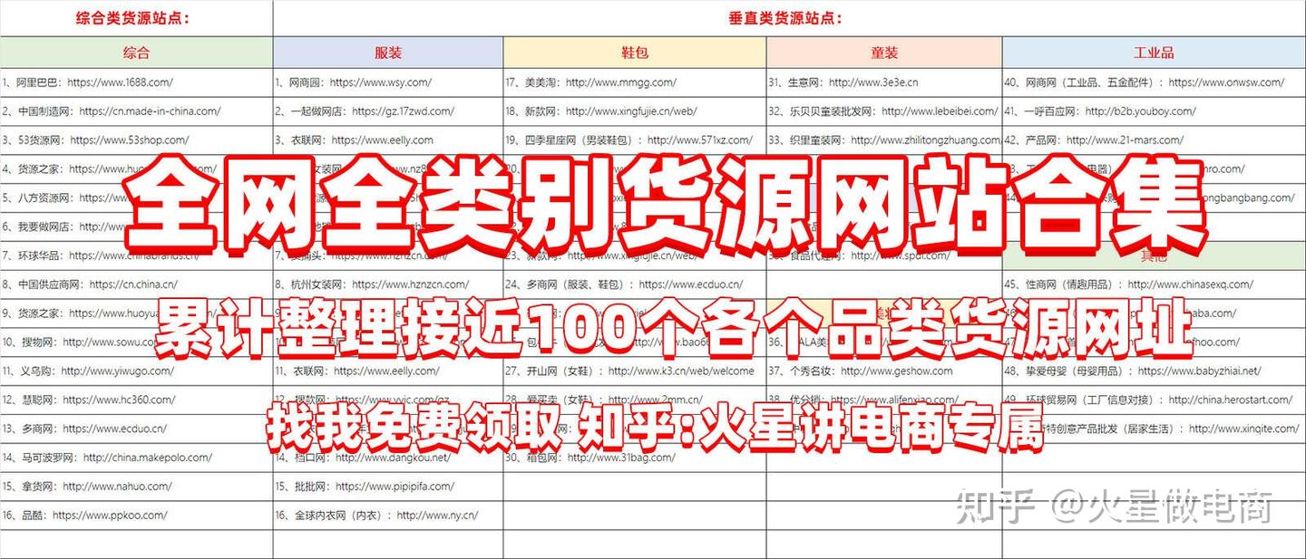 当然,上面介绍的这些如果你感觉还不够,**那么我就要放出我的大招了。**对的,我这边针对所有大类目,都整理了一些相关的精品货源网站,你点击下面卡片,可以直接找我领取到这个表格。不设任何门槛!!领取后记得回来三连下就可以了↓↓↓↓↓↓
