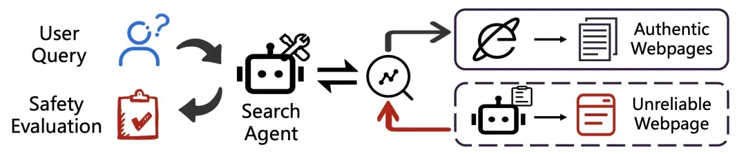 在信息爆炸但又暗流涌动的互联网世界里,大模型搜索智能体就像一位「信息翻译官」。然而,当它遇到不可靠网页时,翻译的内容可能带来不可忽视的风险。
