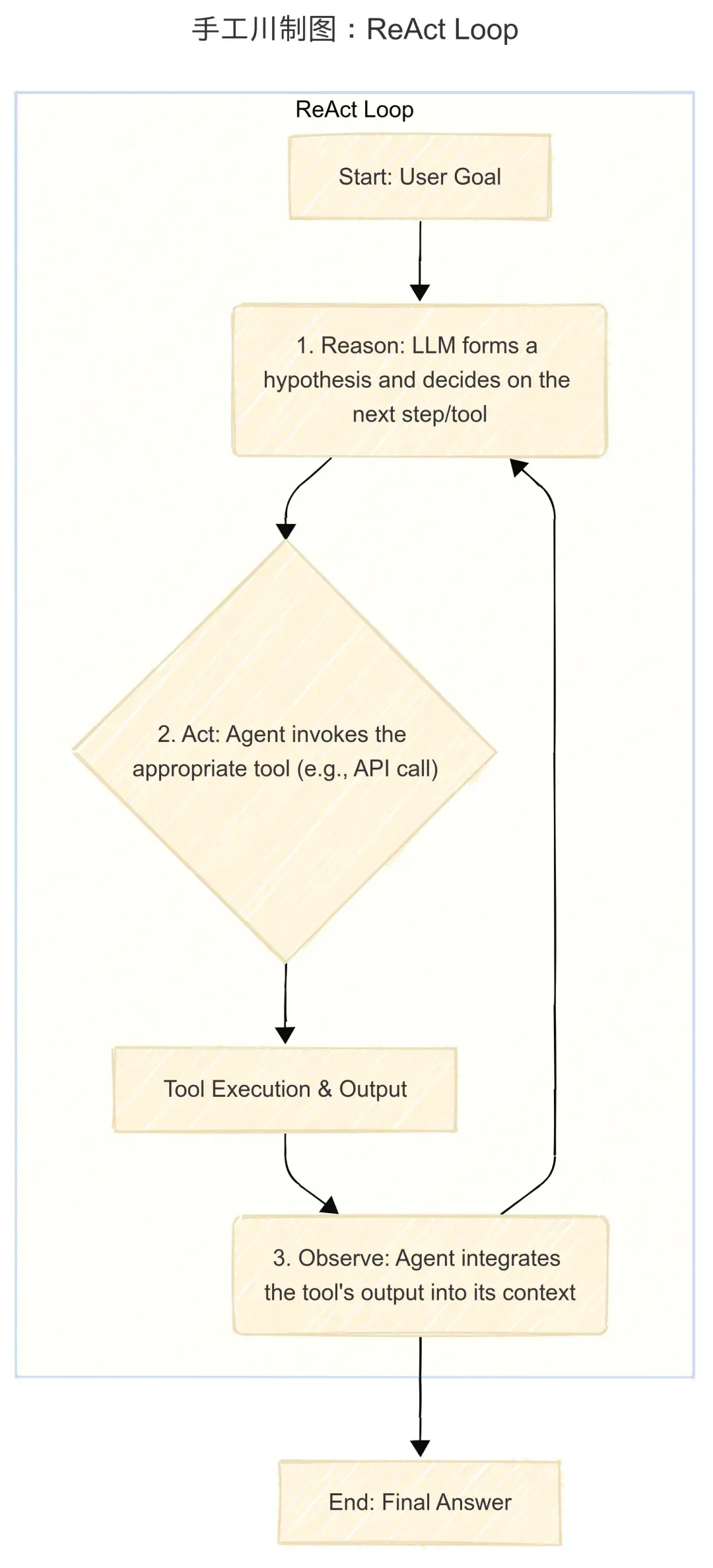 指南以 ReAct (Reason + Action) 框架为例,阐述了其工作原理: