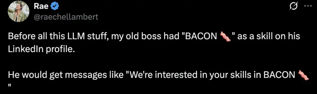 或者在领英个人资料上写着「BACON」这项技能,收到的信息就是「我们对你的 BACON 技能很感兴趣」。