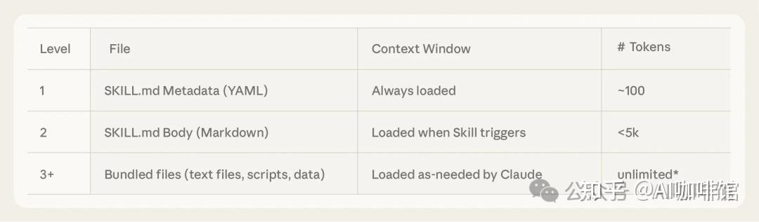 一个 Skill 的内容被划分为三个层级,在不同时机被加载,实现了效率与能力的完美平衡。