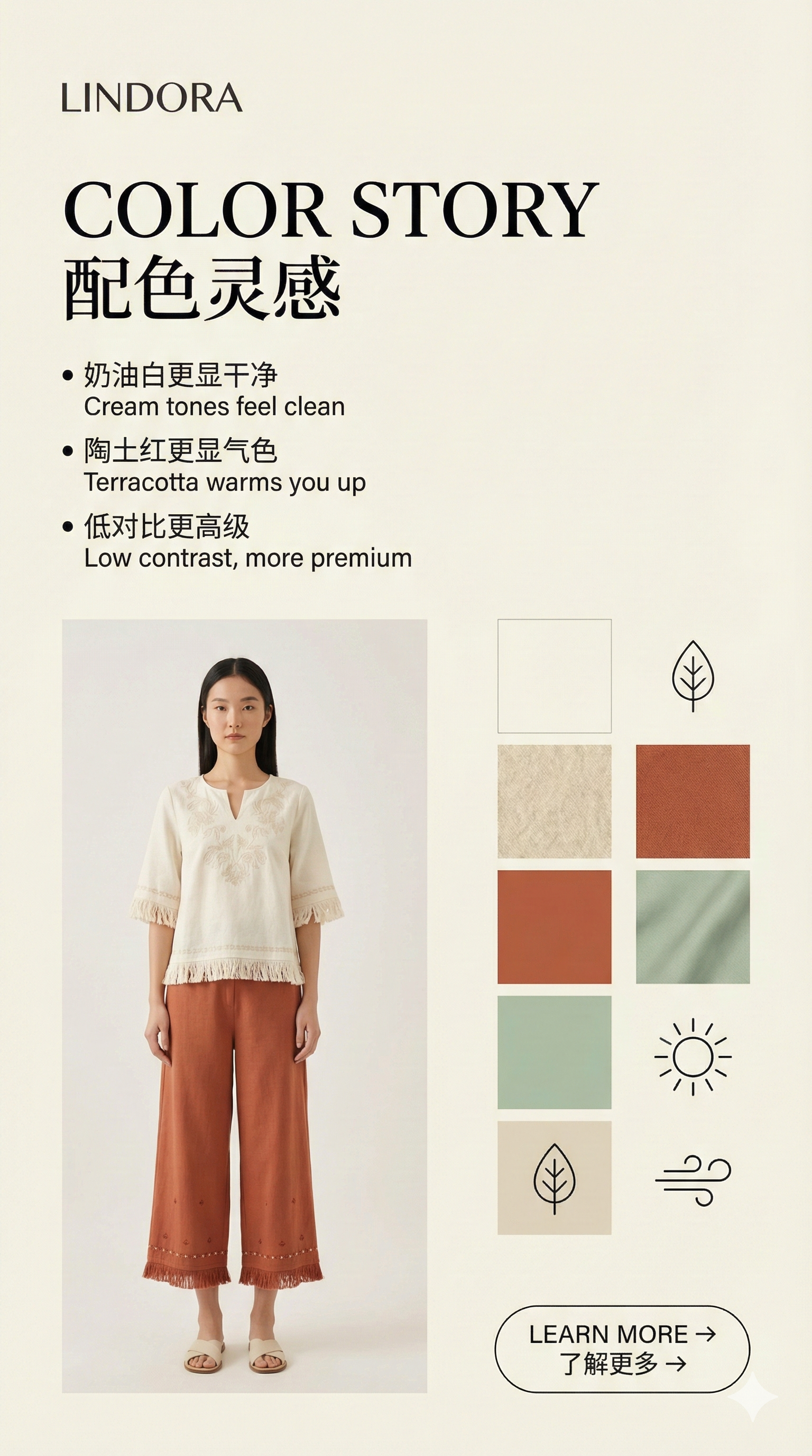 海报01|主KV·自然套装(Hero) Prompt: `` 9:16 vertical premium minimalist fashion poster. Soft studio dayligh