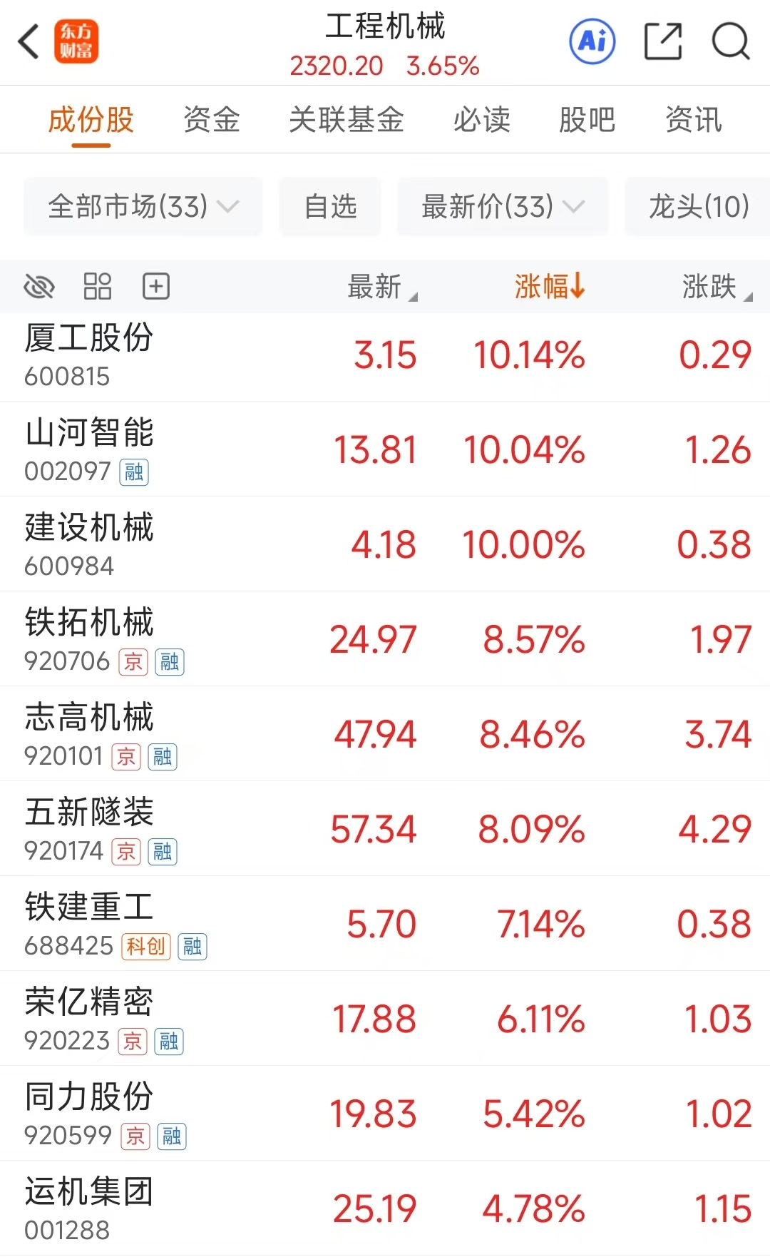 在“深地经济”刺激下,工程机械板块10月21日强势拉升,收盘时厦工股份、山河智能、建设机械纷纷涨停;铁拓机械、志高机械、五新隧装等也大幅拉升。