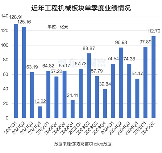 单季度来看,今年第二季度,工程机械板块实现归母净利润112.7亿元,是2021年第二季度后,再次实现单季度净利润超百亿的情形。
