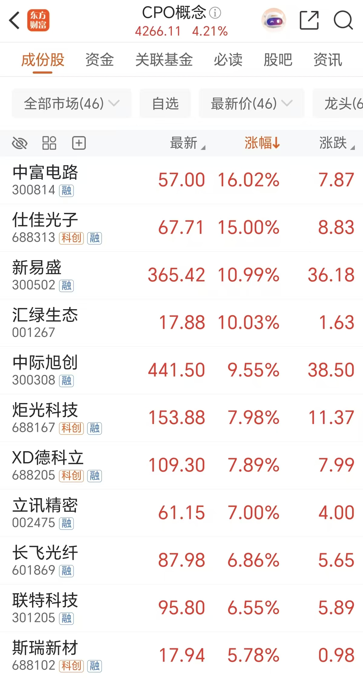 周二(10月21日)光模块、PCB为代表的算力硬件股爆发,中富电路涨超16%、仕佳光子涨15%、新易盛涨超10%、中际旭创涨超9%、东山精密涨超8%、胜宏科技涨超6%、天孚通信涨超5%。
